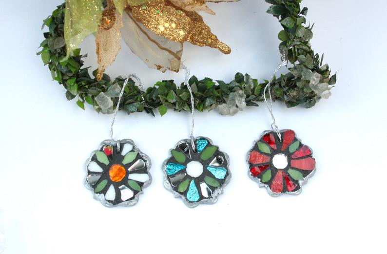 Fiore colorato Ornamento di Natale in mosaico artistico Italiano. Addobbo albero di Natale fiore colorato in mosaico di vetro idea regalo.